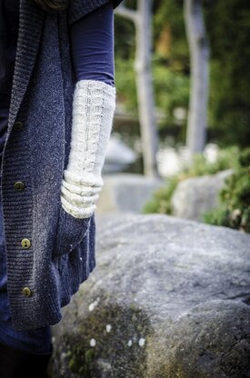 These pretty Arm Warmers feature an eye catching center cable surrounded by Reverse Stockinette to help showcase the delicate leaf pattern.