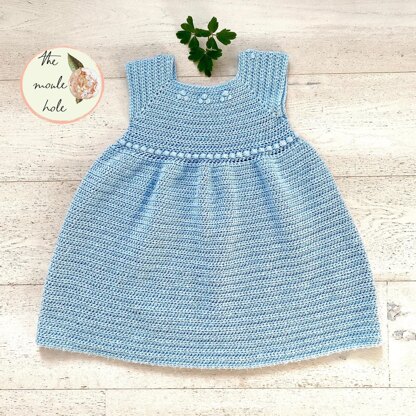 This is the perfect beginner friendly dress for you little one. It has no seaming at all and works up so quickly!