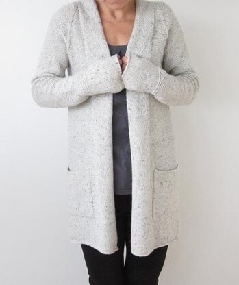 This is named after a beautiful loop at one of my favourite Nordic ski destinations. The cardigan is worked from the top down, in one piece, with false stocking stitch 'seams' on a mainly reverse st st background. It has roomy pockets and extra long sleeves. Provisional cast-on is recommended for the back collar sections and cable cast-on is recommended for the pockets. Total length is approximately 80 cm / 32 inches. About the yarn I used, both Kathmandu and Silk Road are labelled DK weight, with a recommended gauge of 20 st / 10 cm (4 inches), so if you are substituting yarn, I would recommend a worsted, rather than DK weight. The garment is pictured in Queensland Collection, Kathmandu, colour 407.