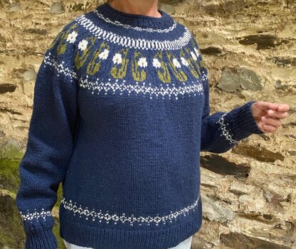 Despite searching, I couldn’t find a jumper pattern that featured snowdrops in the way I imagined them. So I decided to design my own.