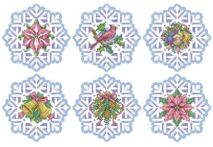 Six Snowflakes Stitch count 69w X 69h on 14 ct, finished size 4-7/8" X 4"-7/8