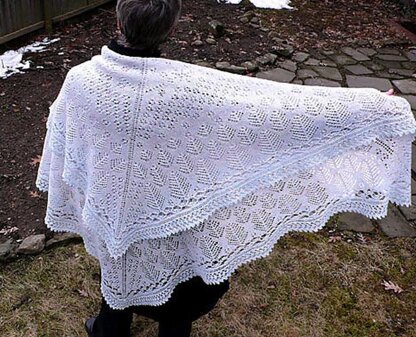 Substituting yarn and needles will result in a variation in finished shawl size and yarn requirements.