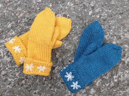 Warm wool mittens with a folded cuff. Folklore inspirated emboidery. An easy mitten model that is quickly produced.