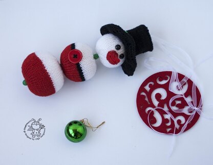 Snowman Bobber Ornament. The head is movable. It is dressed in a hat. The finished toy is approximately 9,06 inches ( 23 cm) tall.