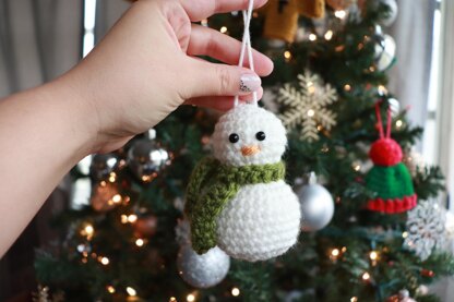 This adorable little snowman ornament is the perfect little addition to your Christmas tree. Complete with a little scarf and carrot nose, he will be sure to be a favorite ornament year after year.
