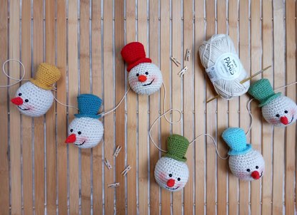 An easy PDF digital pattern for crochet Snowman ornaments ! Cute Christmas snowman head ornaments garlandPattern is written in English US terminology only.