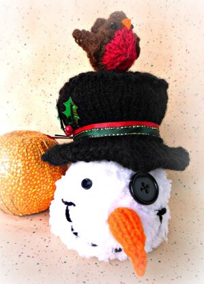 Head, hat and robin knitted in the round, other pieces knitted flat.