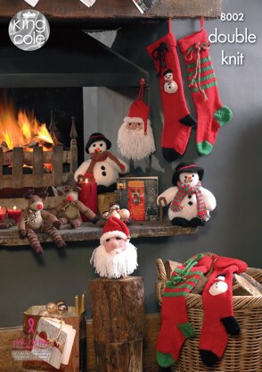 Snowman, Santa Head, Rudolf and Christmas Stockings in King Cole DK - 8002 - Downloadable PDF