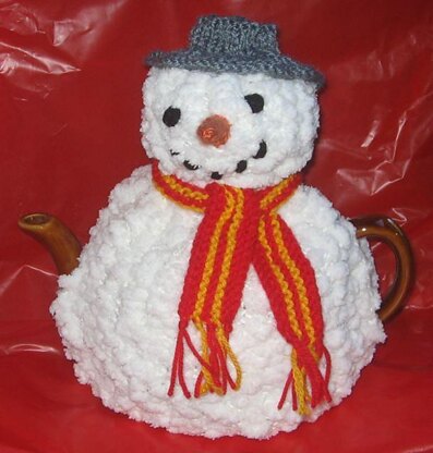 I call this one “oxymoronic”, which just about sums up a knitted snowman tea cosy in an Australian summer! He is quick to make and takes less than 2 balls of "bobble" type yarn (eg "Ping pong" or "Marshmallow") and 1 ball of 8 ply/DK, plus little bits for scarf and hat.