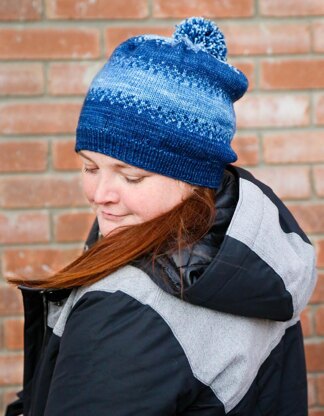As winter starts to set in, and the days grow short, I am reminded of my childhood, playing outside as the street lights came on and the falling snowflakes began to glisten. Looking up into the deep blue sky above, each unique speck would fall softly to the ground, disappearing and reappearing as it entered and left the iridescent rays of light. Inspired by the many evenings I sat and watched this beautiful occurrence before being called in for dinner, the Snowy Nights Hat brings to life the memories of glistening falling snow, illuminated by street lights in each row of beautiful colour work. This is a great introductory pattern for any colourwork beginner!