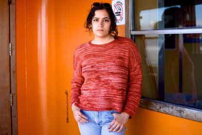 Simple stitch patterns, and one piece construction make this pullover a breeze to knit. Fingering weight yarn is worked at a loose gauge for a casual, loose fit that is perfect for summer evenings or early fall days. The variation in color of hand dyed yarns add an extra bit of interest while allowing the stitch patterns to shine. This oversized top is designed to be worn with 6-10” (15-25.5 cm) of positive ease. The sizes given under Finished Bust above are the actual finished garment measurements. To select your size choose a number that is 6-10” (15-25.5 cm) larger than your bust measurement.