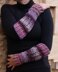 The arm warmers in this pattern were made with a lot of double coloured strands of yarn, except the Katia Azteca (self-striping) ribs in the beginning and the end. This makes these arm warmers fairly thick. You can make them less thick by using single strands. When using single strands, you will need about 200 meters of yarn to make them.