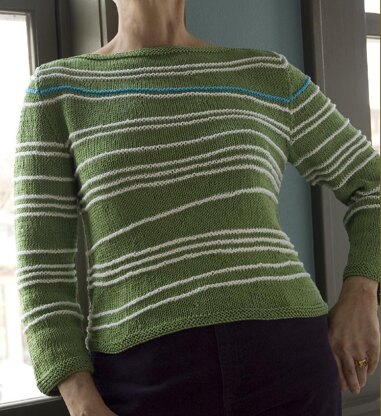 Bright stripes meander where they want with the help of a few well-placed short rows. The back and front are mirror images and each sleeve is different to match the stripes right next to it. Great fun - and flattering too.