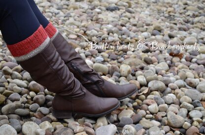 Boot cuffs are a fun way to play with colour and pattern on a small scale. They are to sock knitters what garter stitch shawlettes are to lace shawl knitters. A fun, quick project to start and finish in an afternoon between more complicated projects. These simple boot cuffs, when worked in the colours shown, are reminiscent of a sock monkey, and are perfect for a casual day outside.
