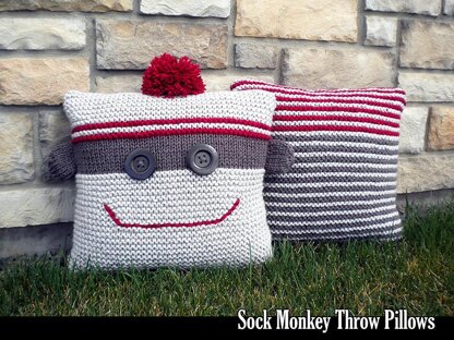 These adorable and stylish pillows are great for all ages and all decor. Adds a touch of whimsy to any room. Everyone loves sock monkeys! They are designed to be extra squishy and soft, with button enclosures on the back so you can easily remove the pillow inserts and throw the covers right in the laundry. This pattern includes instructions for BOTH pillow designs. One design is a simple striped pillow, the other is a perfect sock monkey head, complete with ears and a big, fat pompom on top!