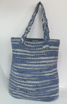 It has crocheted plaited handles and an oval base which is reinforced by a plastic canvas insert.