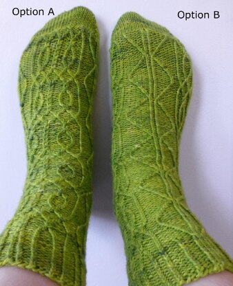 I couldn't decide which twisted stitch pattern to highlight as the center motif in these socks, so I included both options! From one pattern comes two different socks- knit either option, or one of each!