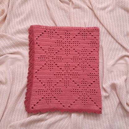 With this pattern you can crochet an elegant blanket made with the filet crochet technique. It measures 71 cm x 84 cm but you can customize it to the needed size with the help of a crochet chart and also includes a project tracker.