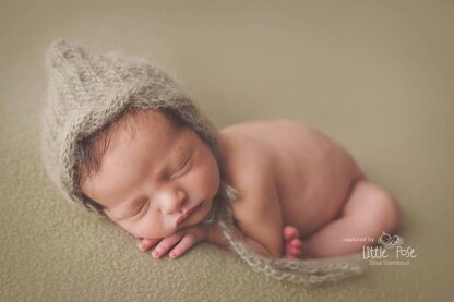 This is a great pattern for a delicate pixie newborn size bonnet. It would be lovely choice as a gift. It would also make a beautiful photo prop. The pattern requires US6(4mm) knitting needles and DK yarn.