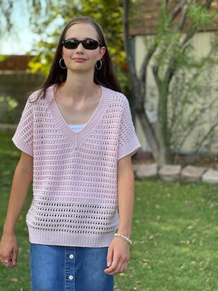 Top is worked in rounds to underarms. Piece is divided at underarms, and back together with front are then worked separately. Techniques used in this pattern: Tubular cast on, tubular bind off, picking up stitches (the links to YouTube videos include in the pattern. Intended to be worn with approximately 10”/25.5 cm of positive ease.