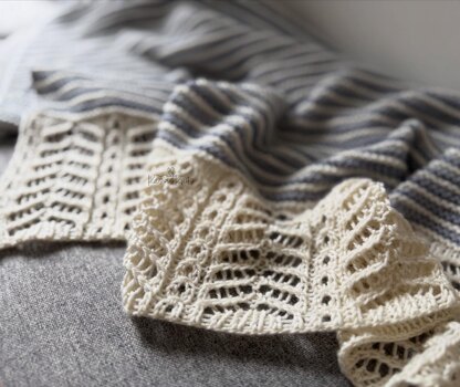 The pattern finishes with a simple yet eye-catching lace border that adds a touch of texture without complicating the process, making this project perfect for mindful, mediative knitting.