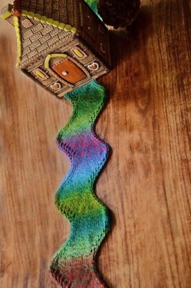 A festive, silly table runner - super fun to knit in color changing yarns. It looked to me like a candy-land road or an elf-sized red carpet. Knit as long or short as you like, based on your target table.