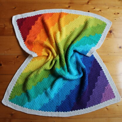 Information is included to recreate the rainbow striped design, yet also includes images of other blankets that have been made with this pattern to guide and assist you to create your own custom colourway and layout. Aran blanket with a 5.5mm hook approx size 84cm/33” x 94cm/37” DK blanket with a 4.5mm hook approx size 70cm/27.5” x 76cm/30”