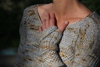 The pullover knitted from the bottom up seamlessly with 2'' positive ease. Shoulders are bound with 3 needles bind off method, and sleeves are knitting in the round.