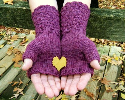 This is a quick and easy fingerless mitt from one skein of yarn. My hands are usually cold, especially when working on my computer at my office! I made these mitts to easily slip on when my fingers ice over.