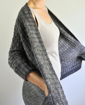 Solace is a textured, oversized cardi featuring flattering slim sleeves and optional pockets. The design is intended to be worn with a large amount of positive ease in the body and zero ease in the sleeves. It is suggested that you measure your upper arm circumference and select a size that corresponds to this measurement. Sample is shown in size S.