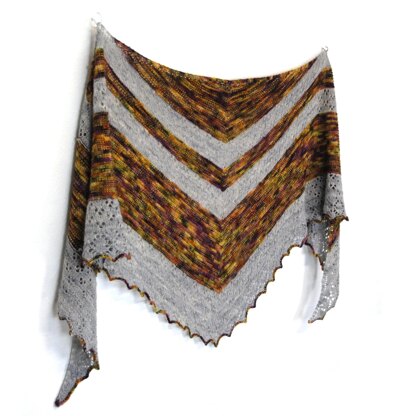 Worked from the top down starting with a garter-tab cast-on, this shallow triangle shawl is knit with alternating sections of garter stitch and lace, then finished with a stretchy bind-off.