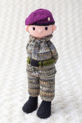 Inspired by my husband and his volunteer work in the Army Cadet Force. Soldier Knitting Pattern - Intermediate Double knitting 2.75 mm (No.12 UK) Straight Knitting Needles Finished height of the doll is approximately 12inches The listing is for the patterns only. NOT the finished doll.