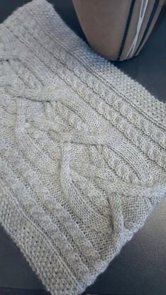I created this cowl using an intricate cable pattern to illustrate this. I used a provisional cast on and worked the cables lengthwise. I joined them with a Kitchner stitch so that the cables would be continuous around the cowl.