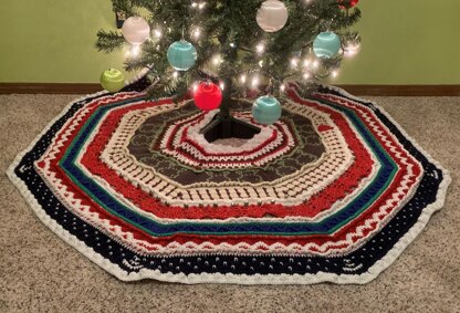 The finished tree skirt measures 48" x 48" and calls for worsted weight yarn. However, several people used a smaller hook and a DK yarn to make the skirt smaller for their trees. In the pattern itself, I have included all of the yarn information and variations from my testers to help you have an easier time choosing what you would like your skirt to look like. With a little bit of creativity and ingenuity, you can change each song to represent something else if you prefer. Instructional videos are included for each section.