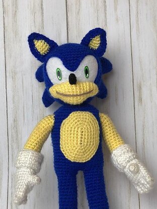 Sonic crochet pattern. Sonic is made from worsted/medium yarn and hook 2.75mm. He is 13"/33cm tall.