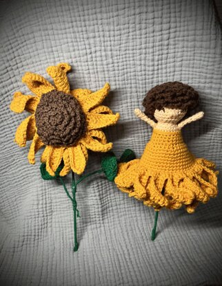 ch habe auf Instagram viele verschiedene Blumen-Wendepuppen gesehen, die mir echt gut gefallen haben. Leider konnte ich keine schriftliche Anleitung finden - wenn überhaupt nur als Video auf Spanisch.. Aus diesem Grund habe ich mich mal selber an einer solchen Puppe versucht - inspiriert von den Designs, die es schon im Internet zu finden gibt. Den Anfang macht Sonja die Sonnenblume. Es gibt noch einige andere Blumen, die ich ganz schön dafür finde, wie z.B. Lilien, Weihnachtsstern, Rosen, Tulpen, Osterglöckchen. Bis die Anleitungen dafür fertig sind, wird es aber noch einige Zeit dauern. Da ich das Zusammennähen am Ende wirklich nicht mag, habe ich alles möglichst so gearbeitet, dass es direkt zusammen gehäkelt wird bzw. an einem Stück ist. Das einzige Teil, welches angenäht werden muss, sind die Haare. Außerdem müssen die grünen Blätter an den Stängel geklebt werden.