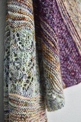 Sonoran was inspired by deserts in bloom where the colors fade in and out in the distance; yet have a beauty that is unlike any other. This shawl is full of mirrored texture fading to lace that you wont want to put down. The flowing drape makes it perfect for year around wear. With many ways it can be styled it is prefect for any occasion.
