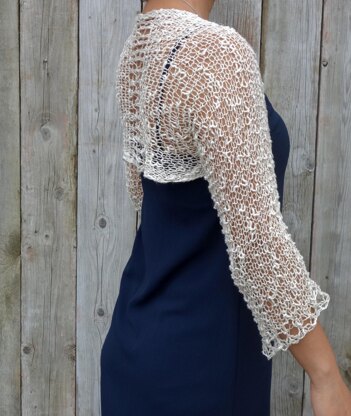 This graceful shrug is perfect to add some coverage on cool evenings. A quick and easy project worked flat, sideways on large needles for a delicate and airy look.