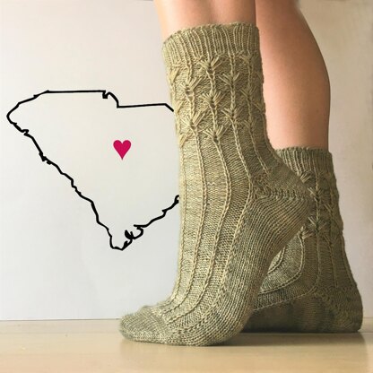 Warm, sunny, and full of southern charm, South Carolina will be well represented by the Palmettos on this sock. This pattern is toe-up, with a short row heel.