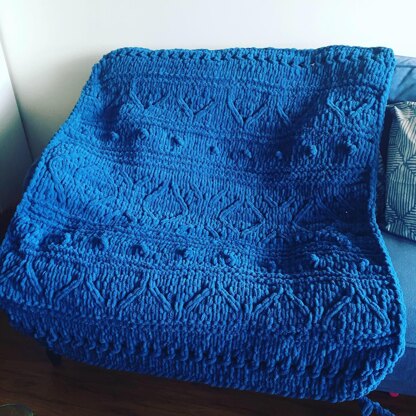 THIS IS A LOOP YARN FINGER-KNITTING PATTERN. The Southwest Lace Blanket Pattern is subtle textured blanket with Southwest geometric motifs and knitted lace. NOTE: While this pattern is written for Alize Puffy yarn, UK knitters can substitute Bernat Alize Blanket-EZ yarn for a blanket of approximately the same size - you will only need 5 skeins.