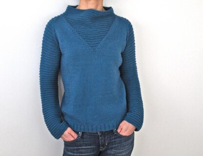 A perfect sweater for wearing with jeans for a walk with the dog or with a skirt for a day out in town. The sweater is worked in the round from the top down with a seamless construction. Collar and sleeves are worked in 2x2 garter stitch pattern. The V for the collar is framed by a 2 stitch seam. The Instructions are included for both the long and short sleeve versions. the long sleeve version was knit in Brown Sheep, Cotton Fleece and the short sleeve version in Hemp for Knitting, Hempwol.