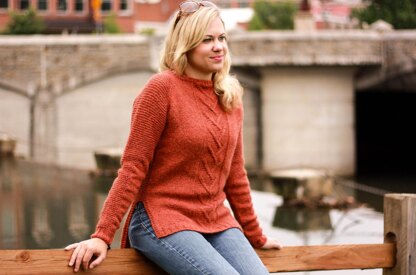 A warm, cozy pullover you’ll be excited to snuggle into when the temperature drops! Fun details spice up a straightforward raglan; worked seamlessly from the top down, it features a simple cable motif (charted), dramatic split high-low hem and tapered garter stitch details down the sleeves.