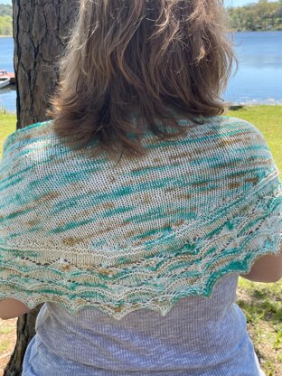 This pretty shawlette is named for the yarn it was knit with! The lace border is worked first, then the short-row body; then a simple garter edging.