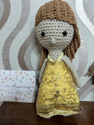 The doll is inspired by Taylor Swift's "Era's Tour" outfit for Speak Now section of the show. The doll is made using continuous rounds, working bottoms up. If using plastic safety eyes, secure them in place before stuffing and sewing. You may sew your eyes on; if worried about choking. Please take into account extra yardage. Before sewing please ensure you have flipped your work so that the right side is outward facing and be sure to be stuffing your work firmly. The pattern is written using US Terminology.
