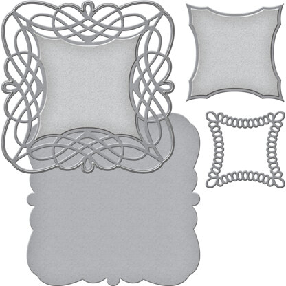 Spellbinders-Nestabilities Dies. These dies feature cutting, embossing and stenciling capabilities. Each set of dies nest in size approximately 0.25 inch larger than the previous die and will work with most die-cutting systems. This package contains Curled Braided Grace Square: four dies measuring between 2.05x2 inches and 4.45x4.45 inches. Imported.