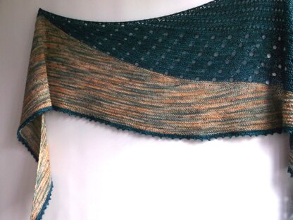 This long scarf/shawl starts as a crescent shape and then uses short rows for a sweep of color and more length. Finishing with a pretty picot bind off.