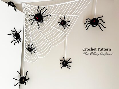 Spiders on Cobweb Crochet pattern Halloween wall decoration Crochet cross spiders Spooky decor Crochet web