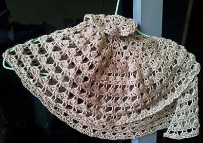 It is a top-down, spiral cowl/shawl. It needs to be blocked so that it will lie flat. If it is small, wear it like a cowl. If it is big, wear it like a shawl. Any yarn and colours will be great for it. Gauge is not important.