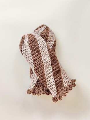 A simple and spiral design of crochet mittens. The pattern is made with worsted weight yarn with 5mm crochet hook, top down construction in rounds throughout.