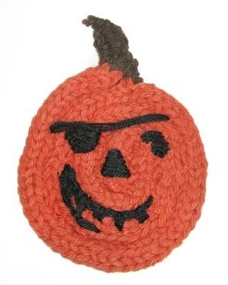 Spool Knit Jolly Pirate Jack o' Lantern Hot Pad in Lion Brand Wool-Ease